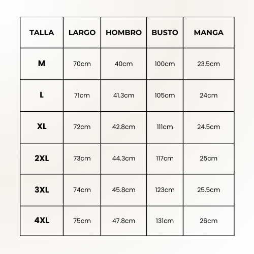 TABLA DE TALLAS