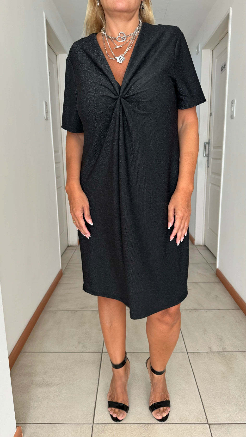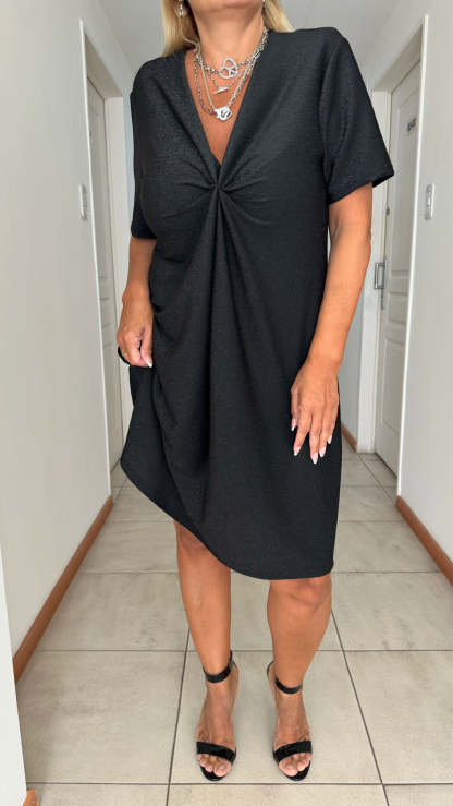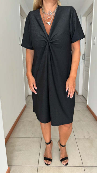 El diseño retorcido en la cintura realza tu figura de manera sutil, creando una silueta favorecedora y femenina. Cada detalle está pensado para ofrecer un look impecable sin renunciar al confort.