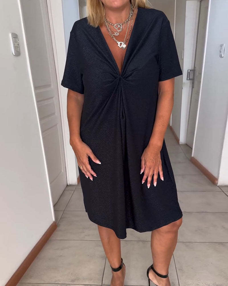 El Vestido Marie con Manga Corta combina un diseño minimalista con detalles modernos para ofrecerte un estilo fresco y sofisticado. Su silueta fluida y su escote en V lo hacen perfecto para cualquier ocasión, desde reuniones casuales hasta eventos más elegantes.
