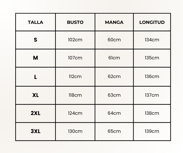 TABLA DE TALLAS