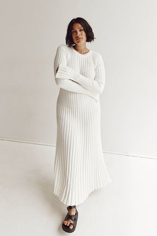 Presentamos el Vestido Midi de Punto con Cuello Redondo y Mangas de Aerelle (también vendemos una versión con cuello en V, consulta nuestra tienda para encontrarla)